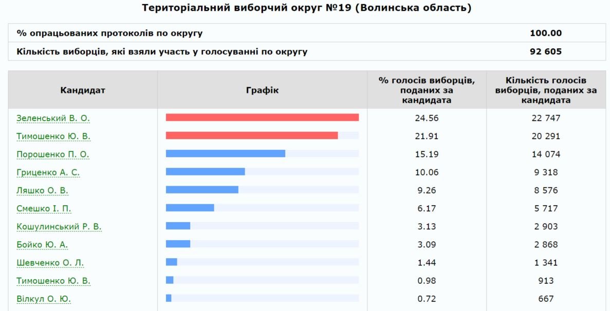 Вибори на окрузі №19: Зеленський – перший, Порошенко – третій