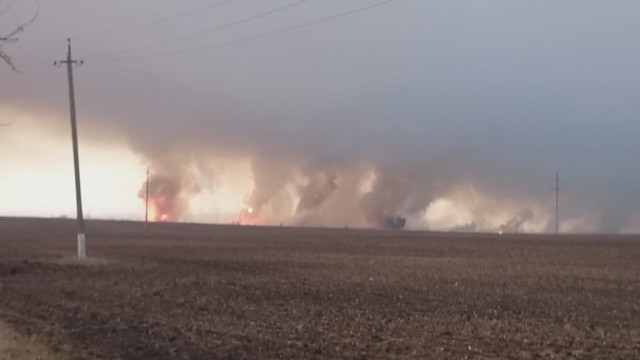 "Авіацію неможливо застосувати в даній ситуації. Боєприпаси вибухають і розлітаються, дальність розльоту 0,5-1 км. Там застосовуються пожежні танки від Міністерства оборони, там є спеціальна команда, у якої є броньована техніка, яка може зайти туди і провести необхідні роботи", - сказав він.