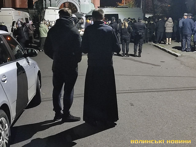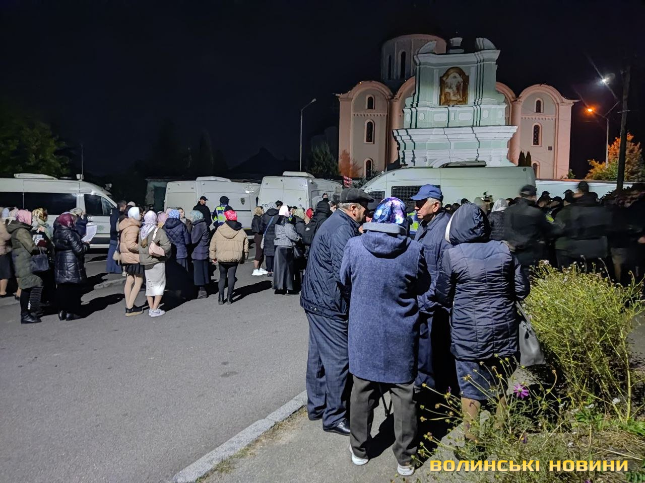 Із самісінького п’ятничного ранку частина жителів Володимира не спала. У місцевому Успенському соборі правоохоронці й Державна виконавча служба проводили дії із передавання майна у власність держави. Напередодні, 9 жовтня, суд закрив останнє апеляційне провадження, яким релігійна громада намагалася заблокувати виконання рішення про виселення УПЦ МП із собору.