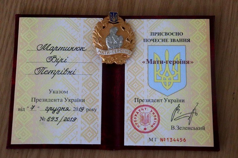 В Україні звання «Мати-героїня» має статус державної нагороди. У серпні 2020 року таке звання отримала мешканка Володимира-Волинського Віра Мартинюк, яка виховує 7 дітей, інформують на сайті Володимира-Волинського, передає Буг.