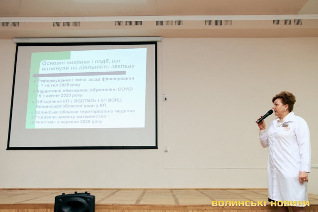 «Перед нами стояло чимало викликів. По-перше – реформування медичної галузі, зміна системи фінансування з 1 квітня, укладання пакетів послуг. Це дуже багато питань, багато комунікацій з Національною службою здоров’я України, – зазначила вона. – Другий виклик – це карантинні обмеження, які втрутились в надання медичної допомоги у всій Україні. Третій виклик – це об’єднання закладів, яке відбулося з вересня минулого року. Враховуючи реформу і карантин, цей третій виклик був надзвичайно важким. Об’єднались дві структури: Волинський обласний перинатальний центр і Волинська обласна дитяча клінічна лікарня».