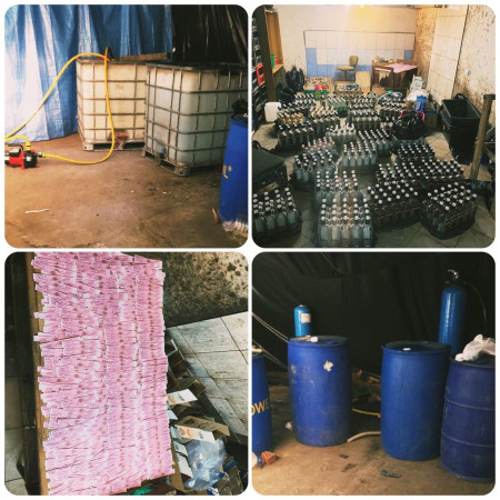 Під час санкціонованих обшуків, проведених у межах кримінального провадження за фактами незаконного виготовлення, зберігання, транспортування з метою збуту і збуту підакцизних товарів та незаконних дій з марками акцизного податку, у приміщенні підпільних цехів на Волині та Київщині вилучено понад 8 тонн спирту, марки акцизного податку, які відрізняються від тих, що перебувають у законному обігу, а також обладнання для виготовлення і розливу фальсифікованого алкоголю.