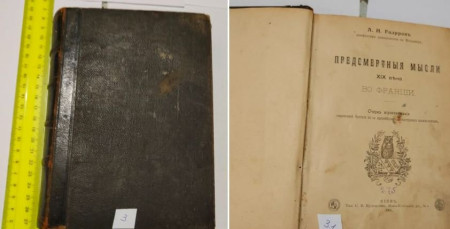 Особливо вирізняється серед інших «Передсмертныя мысли XIX века во Франціи» авторства заслуженого професора Олексія Гілярова. Він був одним із організаторів та першим академіком-філософом Національної академії наук України, створеної за Гетьманату Скоропадського. Його книга, видана в Києві у 1901 році на якісному дорогому папері із тисненим золотом шкіряним корінцем, збереглася в чудовому стані і стане однією з окрас Музею книги і друкарства України.