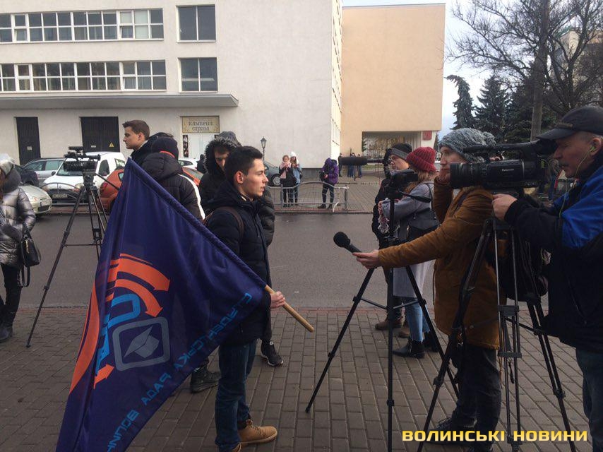 Близько 30 студентів зібрались біля Волинського окружного адміністративного суду на мітинг. Молодь вимагає зниження ціни на проїзд для студентів до 2 гривень 50 копійок. Попри анонсований масштаб і розмір мітингу, долучились до акції протесту одиниці.