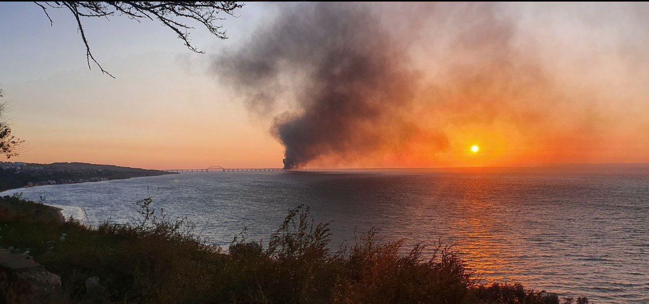 Окупаційна влада Криму заявила, що на Кримському мосту нібито вибухнув вантажний автомобіль.