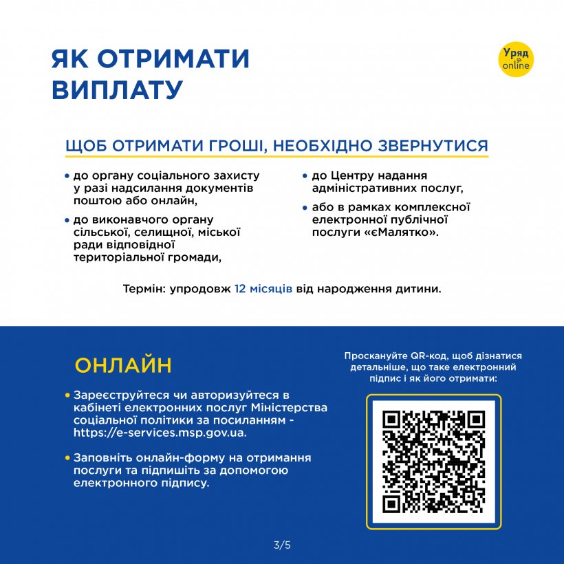Потрібно також мати рахунок для виплат у банку, який уклав договір із Міністерством соціальної політики. Відкрити його можна завчасно, ще до народження дитини.