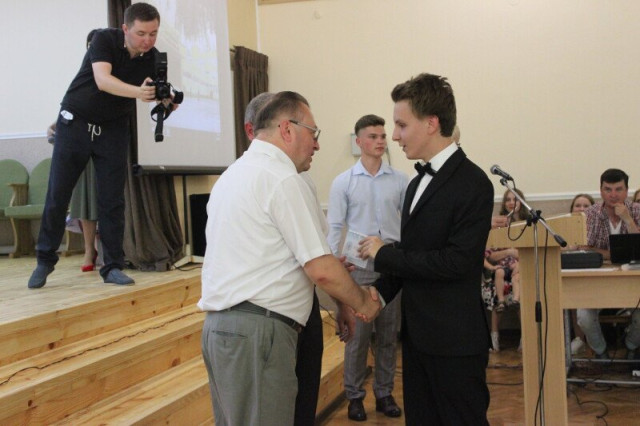 Потому, Григорій Пустовіт разом з директором гімназії № 18 Сергієм Скороходом вручили атестати випускникам.