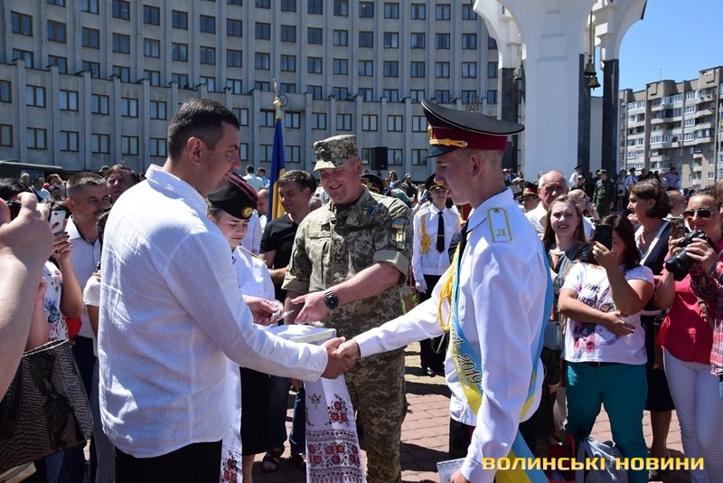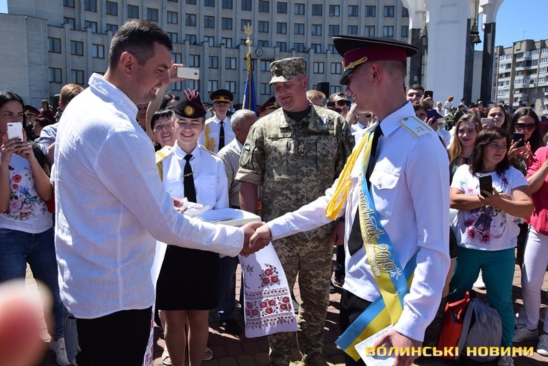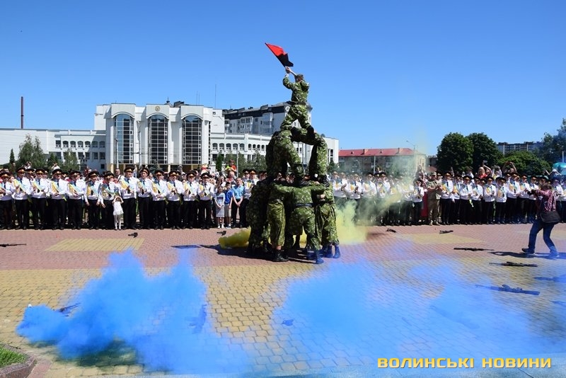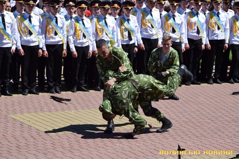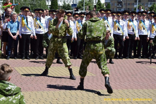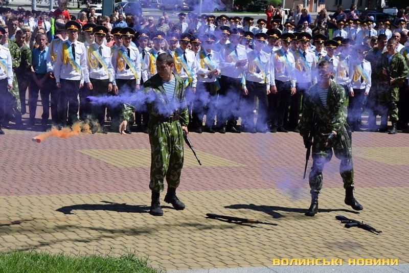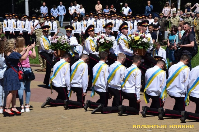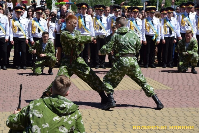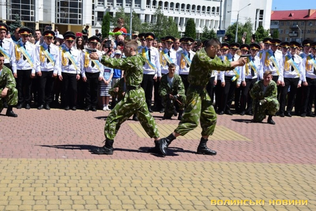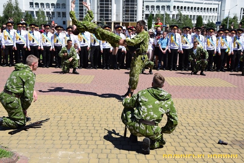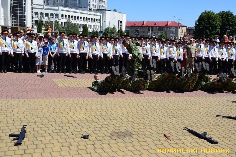 Урочистий захід з нагоди випуску ліцеїстів Волинського обласного ліцею з посиленою військово-фізичною підготовкою імені Героїв Небесної Сотні відбувся на Київському майдані, розчуливши патріотичними урочистими заходами і вразивши показовим виступом ліцеїстів.