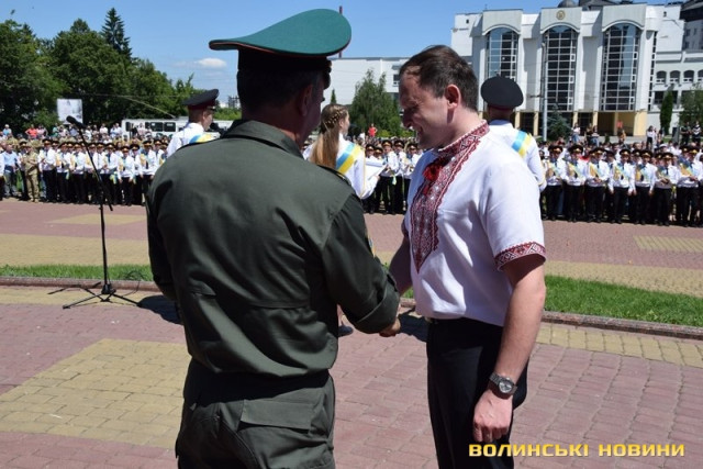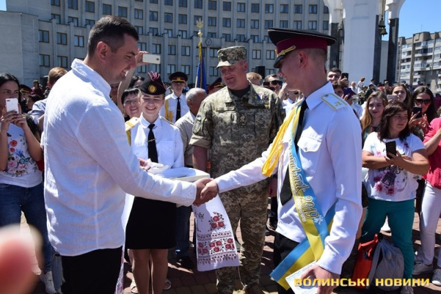 «Хочу привітати всіх випускників нашого ліцею імені Героїв Небесної Сотні, – сказав у вітальному слові Олександр Пирожик. – Вітаю колектив нашого навчального закладу, викладачів, які передали свої знання і вміння, аби випускники зробили наші збройні сили потужними і берегли цілісність України. Я гордий тим, що у Волинської обласної ради є такий зразковий ліцей, найкращий якщо не у всій Україні, то на правобережній її частині точно. Прийнято дуже правильне рішення віддати майновий комплекс у Ковелі саме в підпорядкування вашому ліцею. Це збільшує його і підвищує рівень кількісно і якісно».