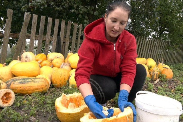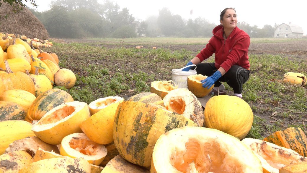 «У нас поля… аби здужав робити. Цього року ми маємо соток 15, торік було більше. А де поле будемо дівати, ми мусимо садити», – каже старожил.Розмір гарбуза не головне, важливе – насіння, саме з нього селяни і мають зиск, розповіла жителька Калинівки Тетяна Оксенюк. Цього року, каже жінка, врожай хороший.
