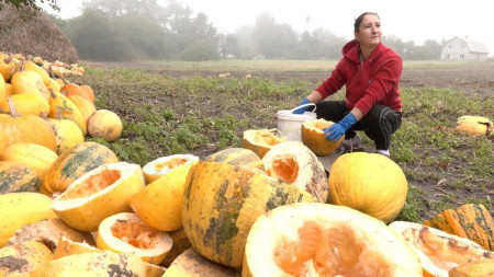 Зі слів Тетяни Оксенюк, процес вибирання насіння може зайняти місяць: «Починаємо з середини вересня гарбузи вибирати, закінчуємо в заморозки-приморозки, як вдарять морози дуже – не можна вибрати гарбузи, бо руки викручує, пальці викручує».