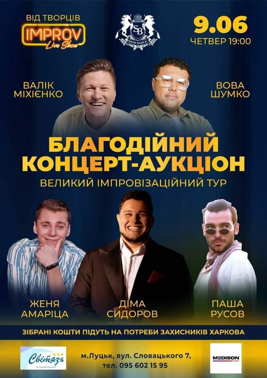 Виступатимуть зірки Improve Live Show та «Ліги Сміху»: у Луцьку кличуть на благодійний концерт-аукціон
