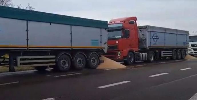 «До Польщі після оформлення в’їхали три вантажівки, якими керували громадяни України. Учасники протесту не пустили транспорт далі, а в один момент відкрили причепи, через що частина зерна висипалася на дорогу. Водії повернули назад в бік України», – повідомила комісарка поліції у Хелмі Ева Чиж.