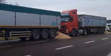 У неділю польські фермери, які продовжують протести на кордоні з Україною, зупинили у пункті пропуску «Дорогуськ – Ягодин» три українські вантажівки та висипали з них зерно, яке везли на експорт. Замки причепів вантажівок поляки розрізали болгаркою, повідомили у поліції низці польських ЗМІ.