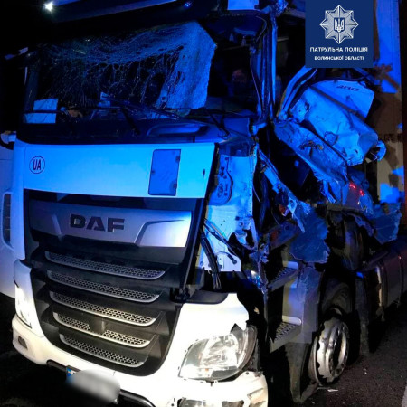Сьогодні вночі на автодорозі М-07 (Київ – Ковель – Ягодин), 439 км, трапилась дорожньо-транспортна пригода за участю двох вантажних транспортних засобів.