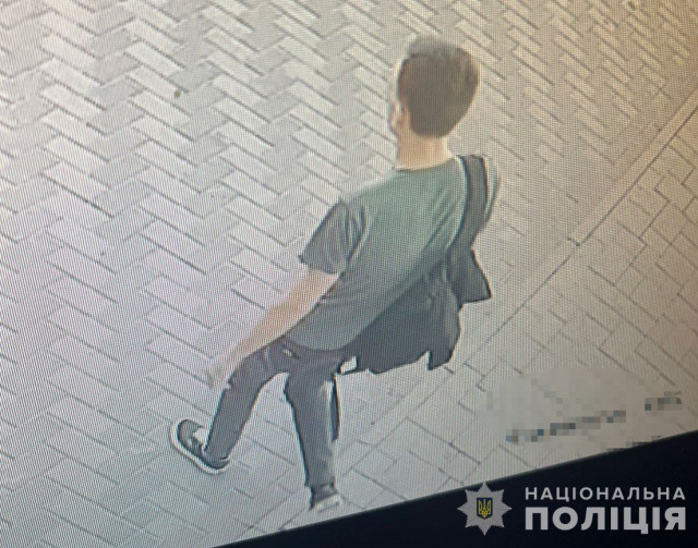 Був одягнений: у футболку зеленого кольору з надписом білого кольору, штани темно-сірі, темні кросівки з білими вставками. При собі мав рюкзак чорного кольору.
