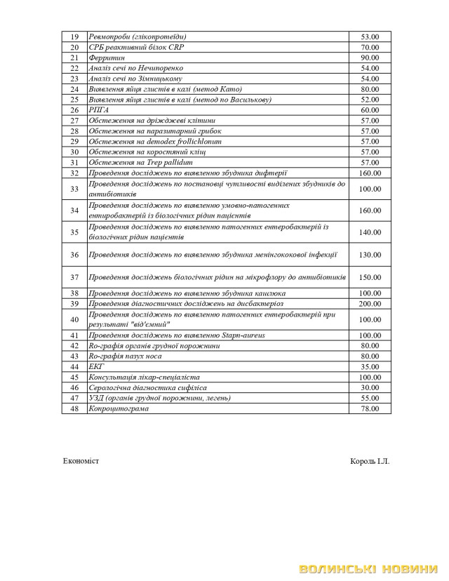 Волинські медичні заклади розробили розцінки за надання платних послуг пацієнтам.