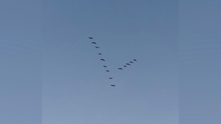 З його слів, днями поблизу села Домашів, на схід від села Тростянець, працівники побачили в небі два ключі журавлів, які повернулися з вирію. Перша зграя складалася з 18 птахів, друга – з 14 особин. Вони рухалися в західному напрямку.