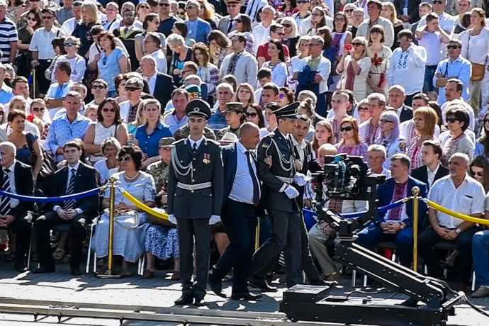 У Києві під час виступу президента Петра Порошенка з нагоди 27-ї річниці Дня Незалежності солдат почесної варти знепритомнів.