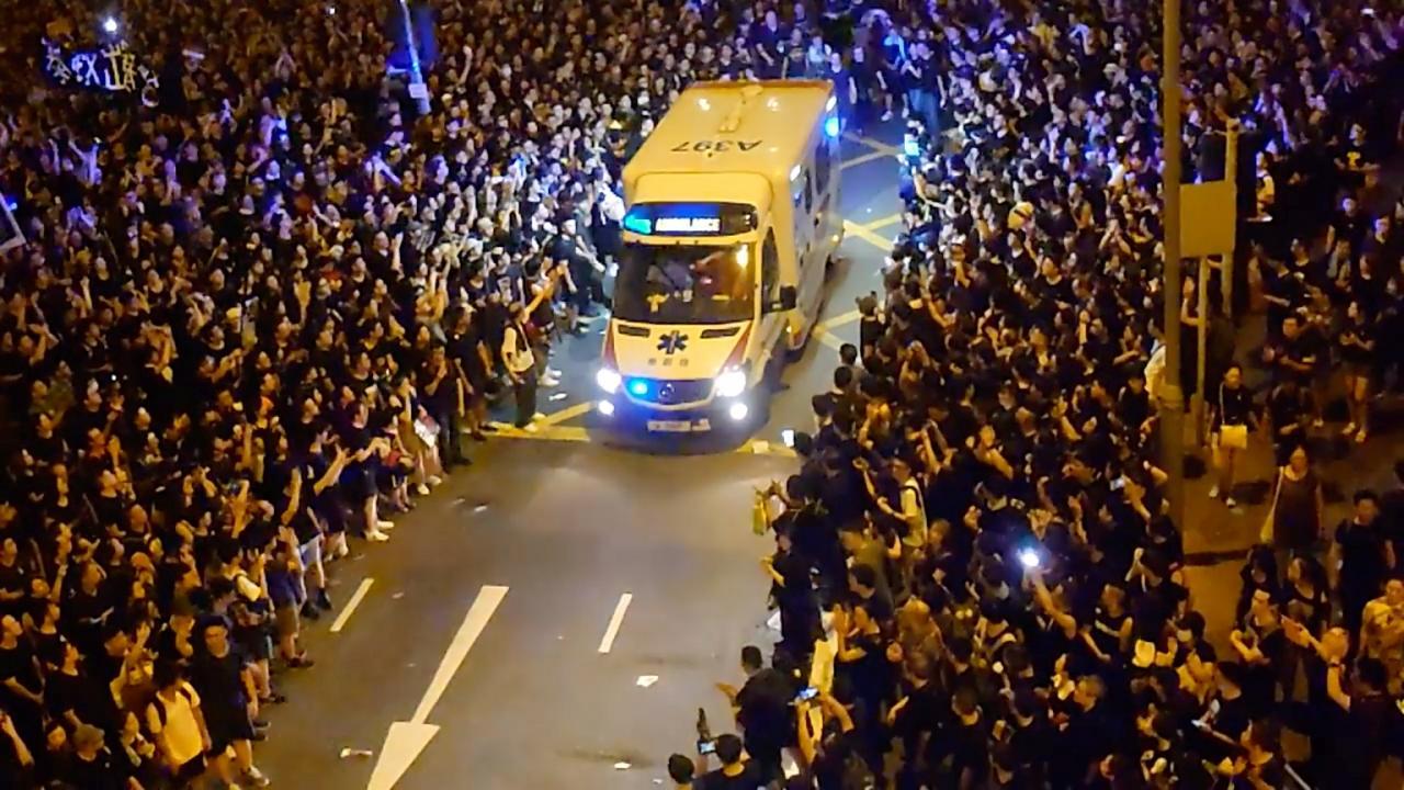 Hong Kong'da yönetimi protesto eden halk, gelen ambulans aracına yol veriyor. pic.twitter.com/wdtOefAAWs