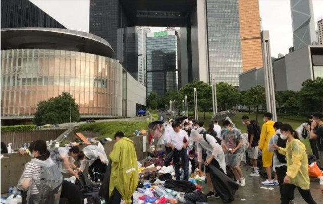 Great 👍 The quality of Hong Kong's marchers is very high, and they consciously help to clean up the garbage. They are not rioters, as the Chinese government calls them. pic.twitter.com/oaZOtYIEQK