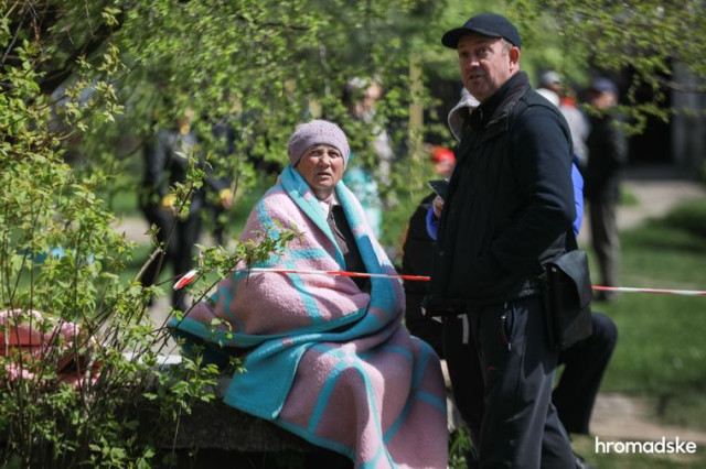 Поруч стоїть її чоловік, обоє ледве не плачуть, потім трохи розгублено йдуть кудись між людей. То тут, то там поміж випадкових спостерігачів легко помітити такі ж, як у цієї жінки і чоловіка, заплакані і розгублені обличчя.