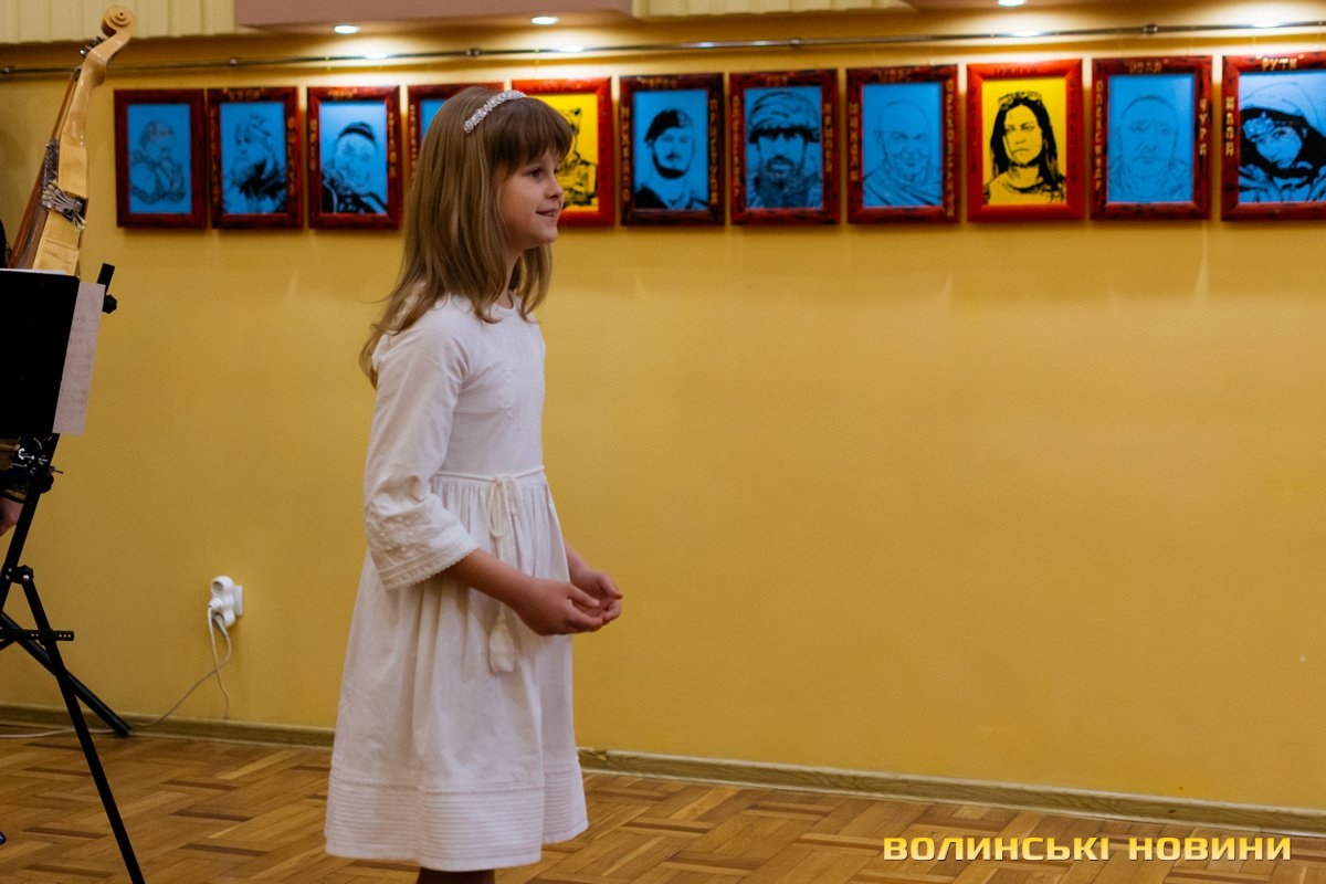 Органічно в сакрально-військову тематику творів вплелися музичний і поетичний супроводи експозиції. За це окрема подяка тріо бандуристок «Дивоструни» ВНУ імені Лесі Українки у складі Наталії Чернецької, Алли Омельчук, Катерини Ковальчук (художній керівник – Мирослава Сточанська).Вихованка дитячої театральної студії «Чудасія» Ярина Масюк прочитала вірш Ірини Цілик «Повертайся живим».Керівник обласного театру ляльок Вадим Хаїнський звернувся до присутніх словами геніальної Лесі Українки. «Триптих 1. «Що дасть нам силу?» він задає це запитання у паралель до представлених робіт, і сам дає відповідь.