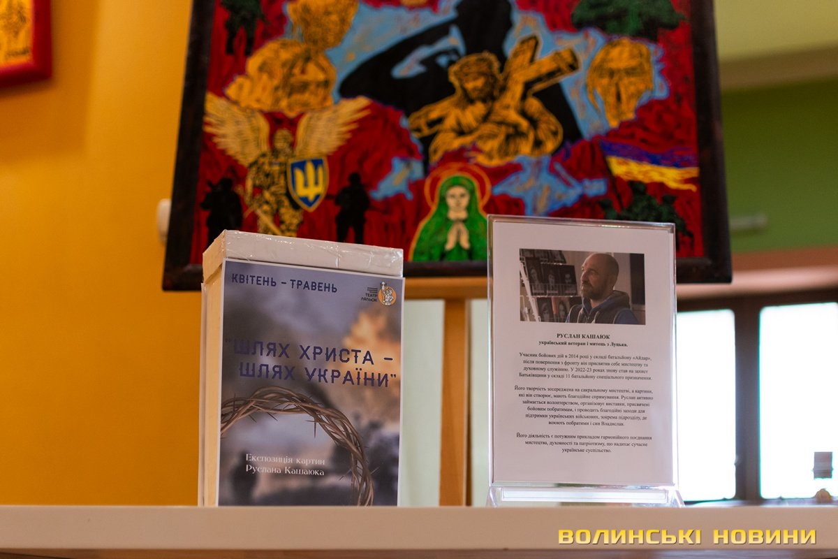 У Волинському академічному обласному театрі ляльок відкрилася персональна виставка воїна, священника, художника Руслана Кашаюка. Символізм робіт, перегукуючись із прийдешнім світлим святом Христового Воскресіння, надихнув організаторів назвати експозицію «Шлях Христа – шлях України».