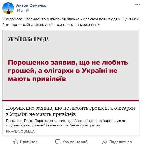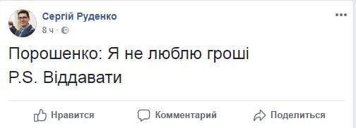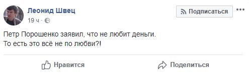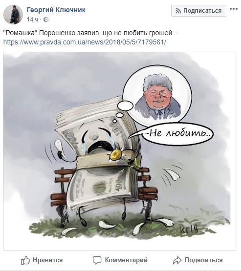 Президент України Петро Порошенко заявив про свою нелюбов до грошей, чим викликав бурхливу реакцію користувачів соціальних мереж, пише U-News.
