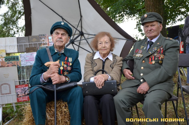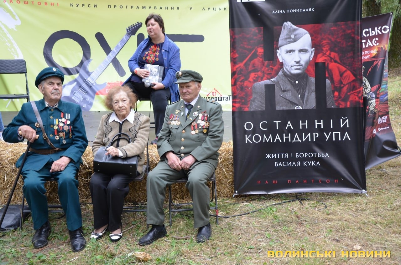 «Тут – діти ветеранів УПА. Їм уже теж 92-й рік, – інформував він присутніх. – Це письменник Ростислав Григорович Кушнірук із Княгининка, літератор, педагог, поетеса Сіма Дмитрівна Кордунова та попередній голова братства Василь Григорович Кушнір із Піддубців».