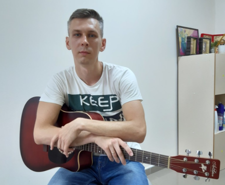 «Мені подобається співати, грати, робити щось корисне для своєї держави, там, де живу, людей, які мене оточують, підтримують. Не звик сидіти, як той гриб, на одному місці. По-перше, це патріотично брати участь у громадських справах, дарувати людям радість від прослуховування хорошої музики. По-друге, для себе бачу в тому стимул позайматися вокалом, помузикувати, розвивати професійну майстерність. Щодо навчання гри на гітарі, то залюбки намагаюся допомогти опанувати її кожному містянину, який того бажає. Серед моїх учнів люди різного віку та професій.