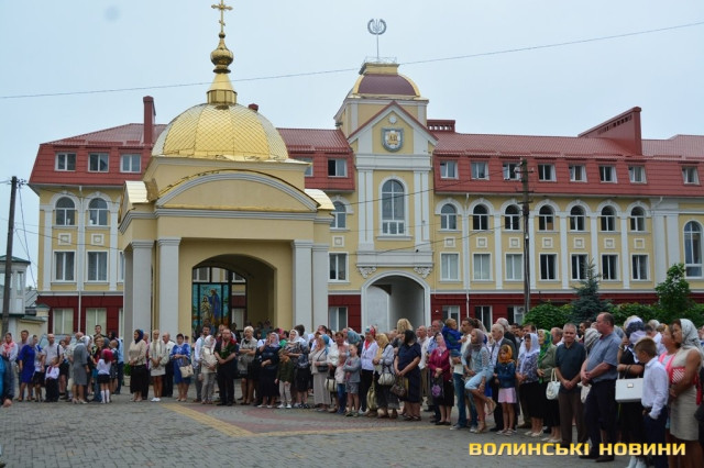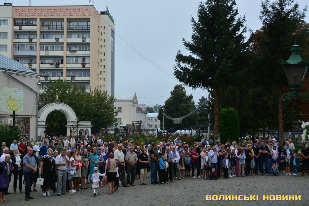 Близько 11 години у верхньому храмі Свято-Троїцького кафедрального собору розпочалося відспівування героя, тож священики на чолі з митрополитом Луцьким та Волинським Михаїлом помолилися за душу полеглого Георгія Ольховського.Михаїл зауважив, що звершуючи богослужіння, усі присутні поважають в останню дорогу героя, захисника нашої вітчизни: «Проваджаючи в останню дорогу, згадується життя людини, яка робила різні вчинки. Хтось життя своє починав добре, благочестиво, а хтось нечестиво його закінчував. Хтось намагався провести життя спокійно, а хтось обирав звершити своє життя, як герой, – ось цей найбільший порив душі сповідується євангельськими словами: «Велике благо покласти душу свою за рідних своїх». Коли сьогодні не вимагається добровільних батальйонів, кожна людина вільно йде захищати батьківщину, порив душі кожного чоловіка – це бажання захистити свою сім’ю, батьківщину та віру».