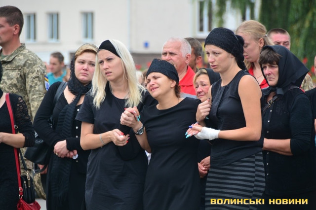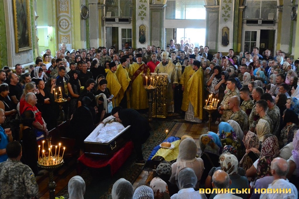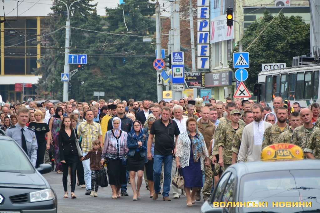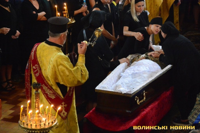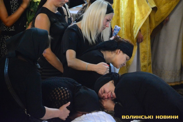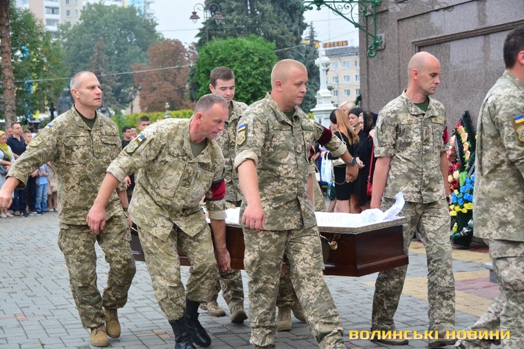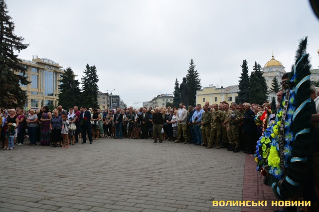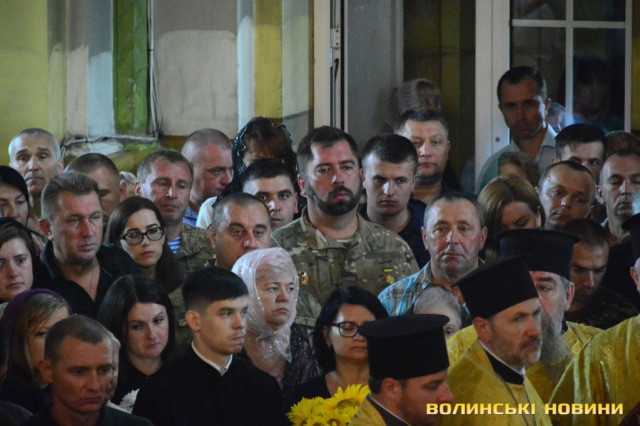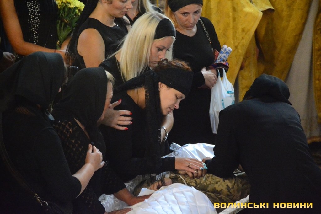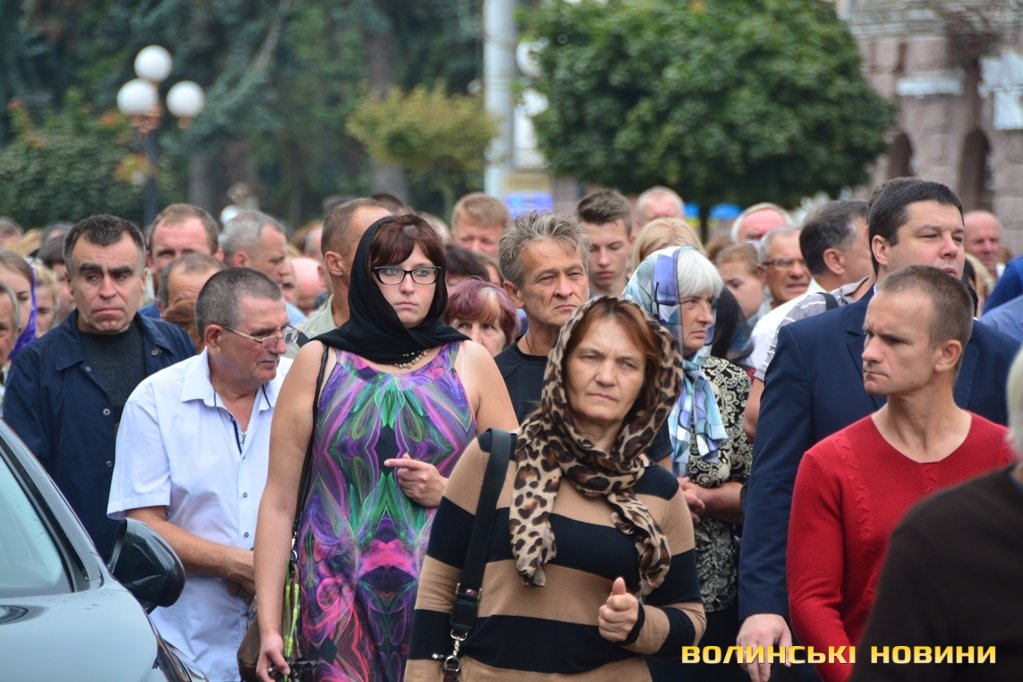 Так, аби провести в останню путь героя, прийшли політики, громадські діячі та просто пересічні лучани. Присутніми також були побратими та родичі загиблого.