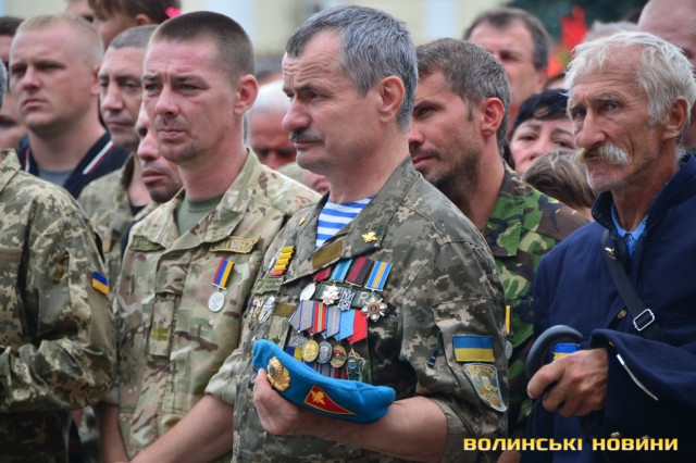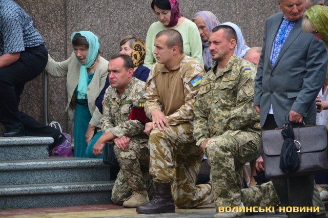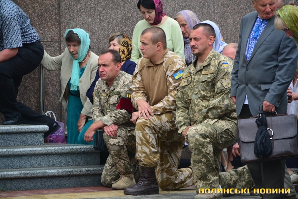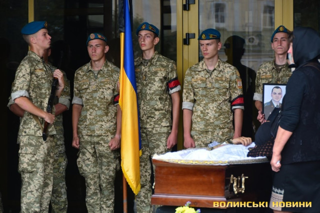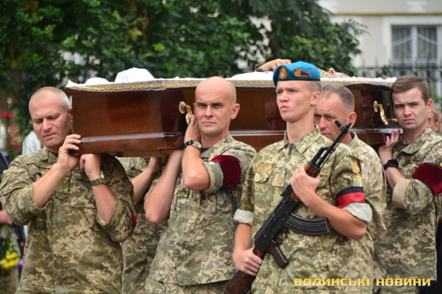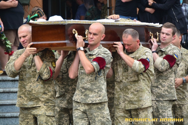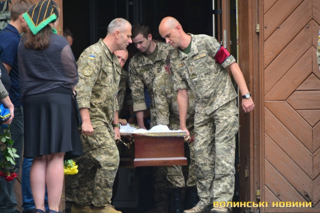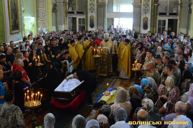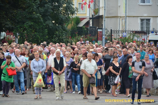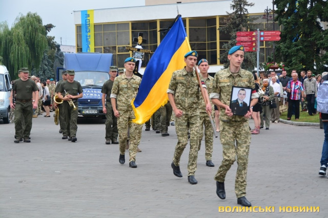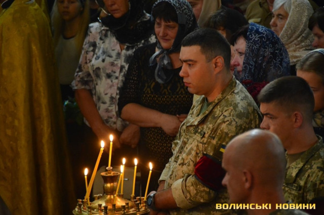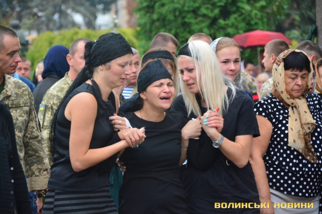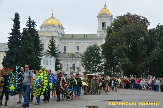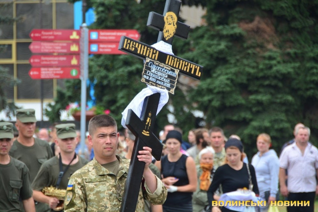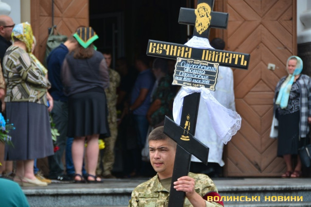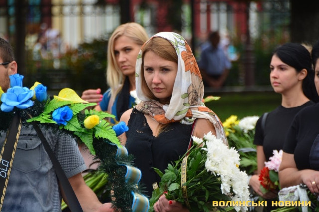 Так, аби провести в останню путь героя, прийшли політики, громадські діячі та просто пересічні лучани. Присутніми також були побратими та родичі загиблого.