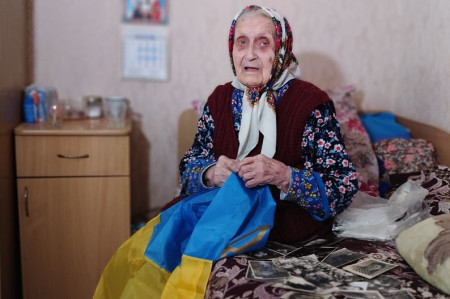 Поміж хусточок у шафі Надія Свирид зберігає український прапор. Його дістає на державні свята.Зі слів Оксани Терлецької, торік вона розклала стяг на День Незалежності України й ним накрилася.