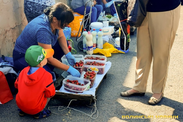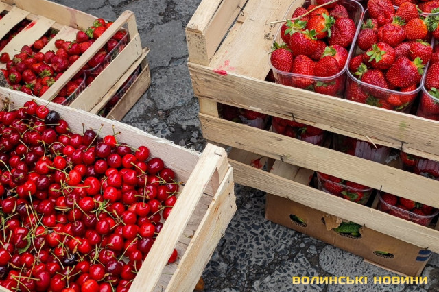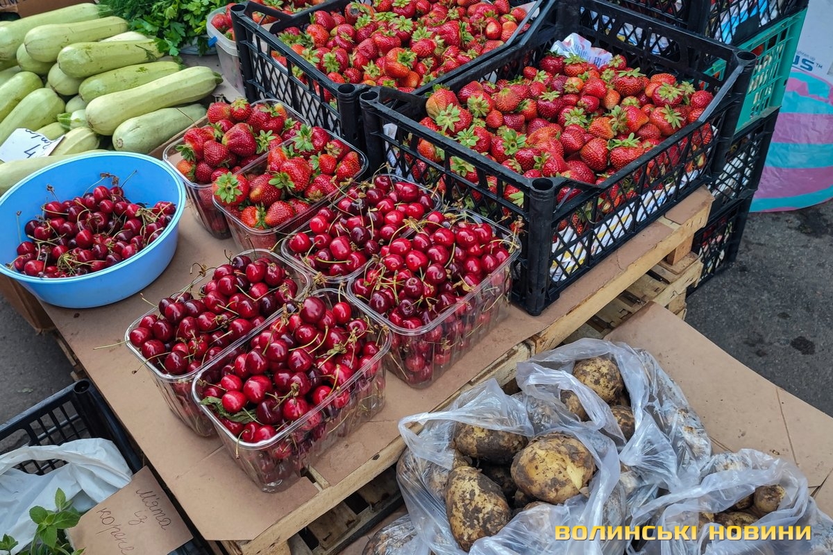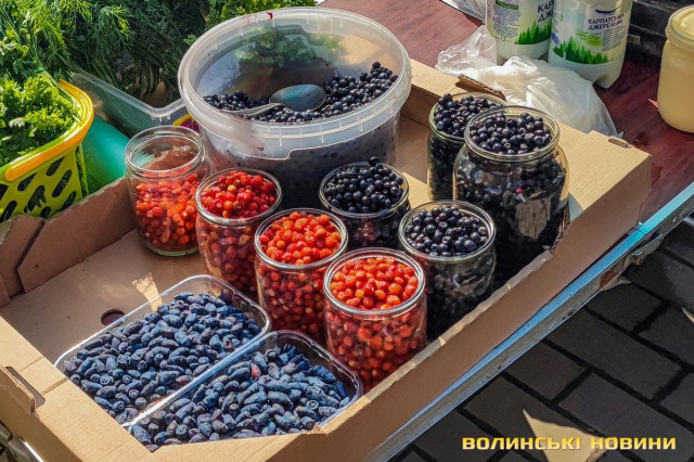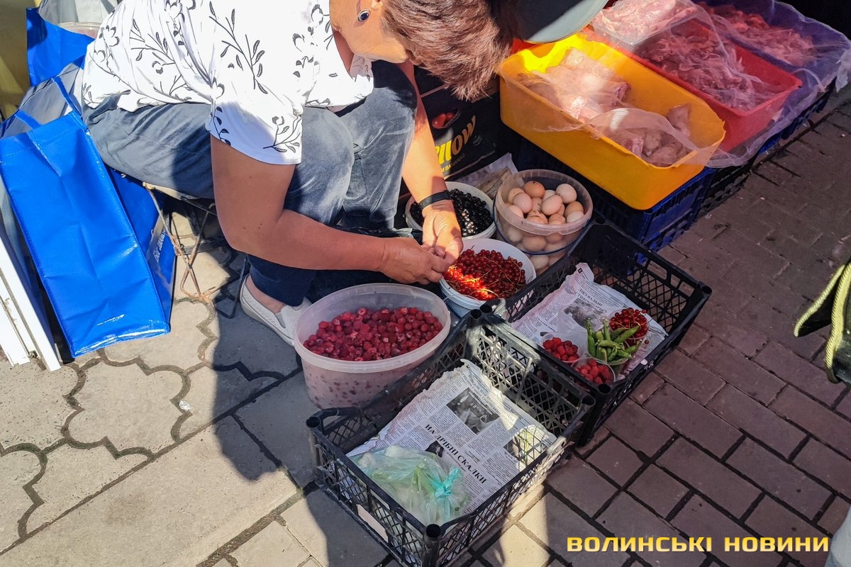 Літо в розпалі, тож ринки наповнені ягодами. Тут все, чого душа бажає: від привозних черешень до рідних волинських чорниць. А ще серед порічок, полуниць та малини можна надибати шовковицю та навіть доволі рідкісну для нашої місцевості жимолость. Ціни кусаються, але покупців від того на позір не меншає.