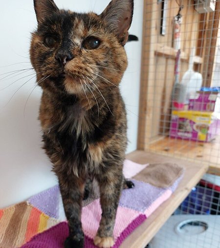 Так у 2022 році Флоссі стала «бездомною» – після понад 26 років щасливого життя у людей. Через вік кішки ймовірність знайти новий дім була маленькою, але Флоссі пощастило. Працівниця організації Вікі Грін мала досвід догляду за старенькими котами – її попередній домашній улюбленець Ханібан прожив до 21 року.