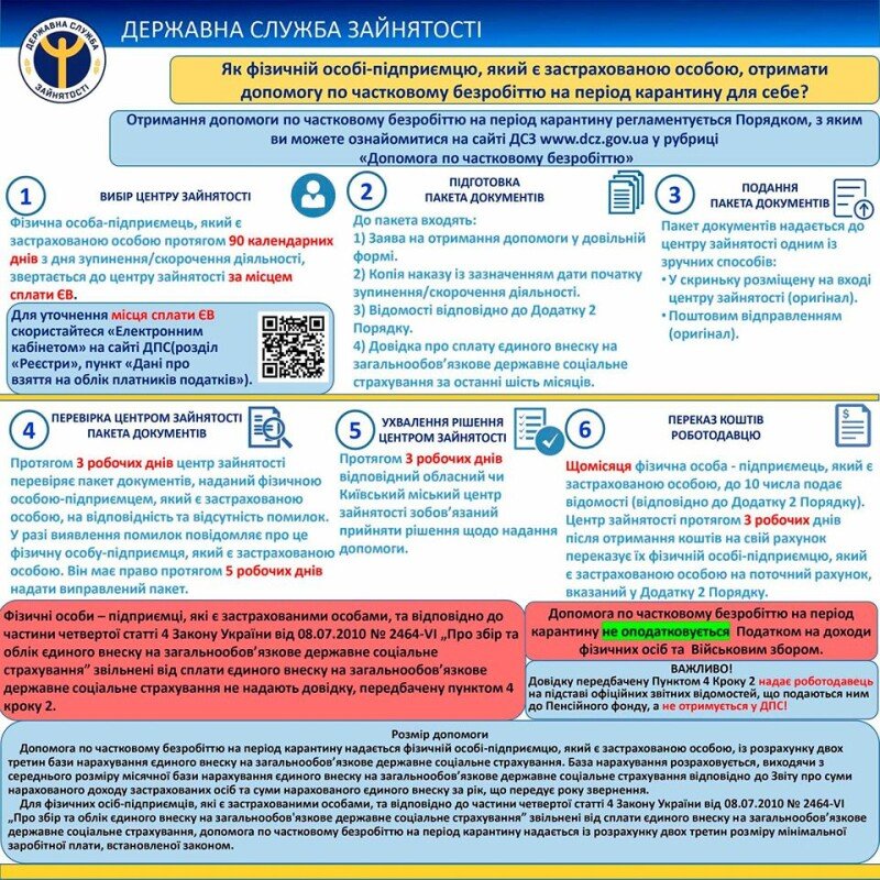 Фізичні особи-підприємці, які не мають найманих працівників, але є застрахованими особами, тобто сплачували єдиний соціальний внесок, можуть отримати допомогу по частковому безробіттю на період карантину.