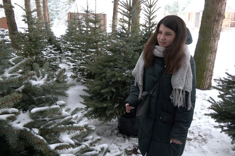 Кожне зрубане новорічне дерево має ідентифікаційну стрічку.До розсадника у Гаражджі, де можна придбати ялинку, приїхала волинянка Наталія Михайлова. Як розповіла, хоче купити дерево в контейнері, щоб весною висадити його у дворі.
