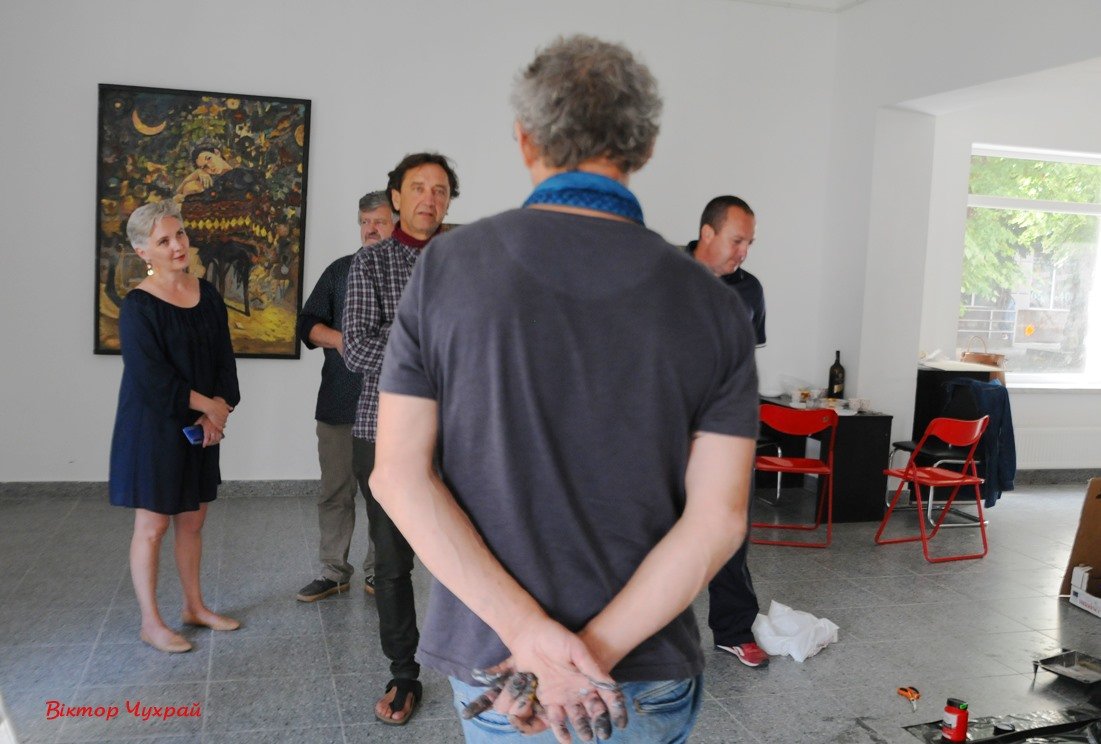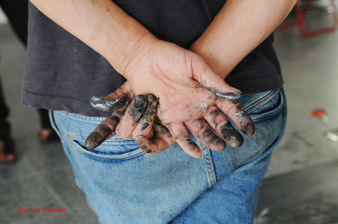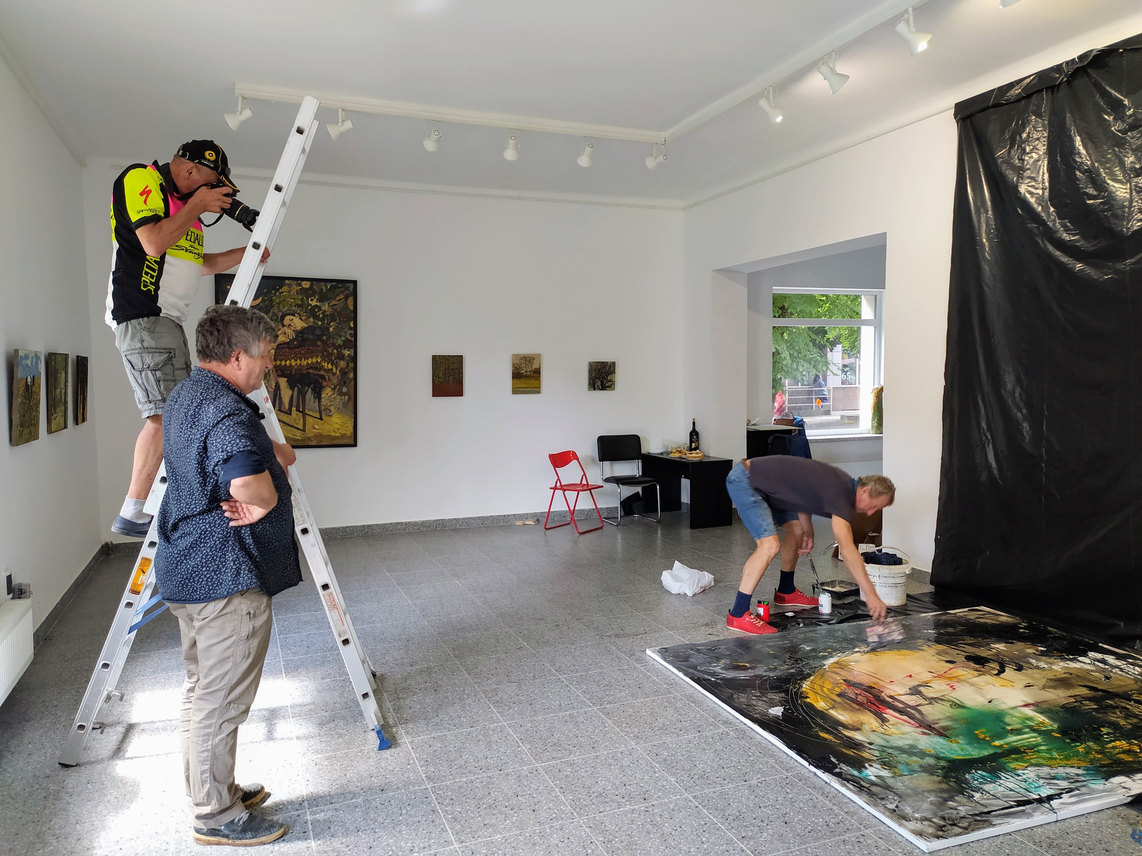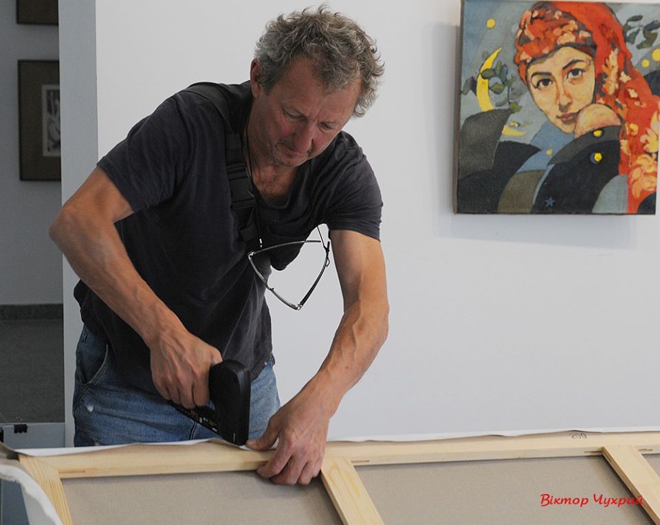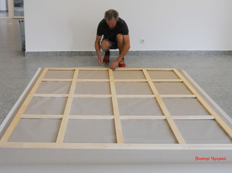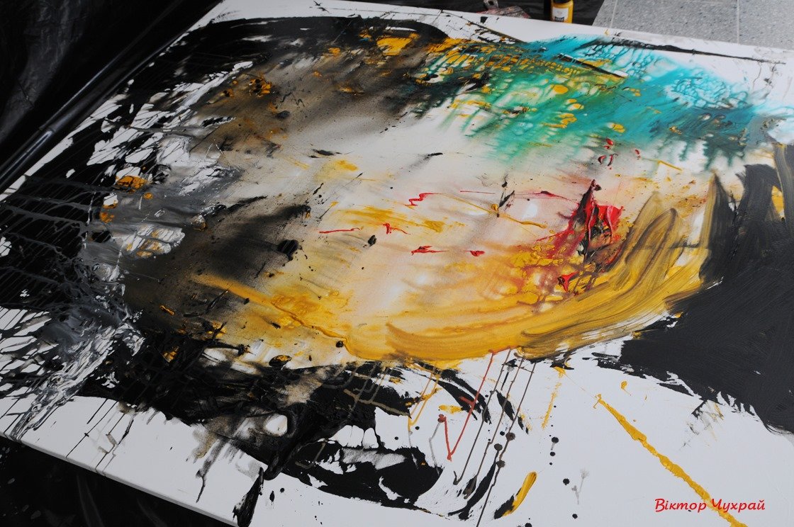 Біле полотно. Пластикове відро з водою. Шпателі. Щітки. Художник Едуард Бєльський виливає трохи води на середину полотна, яке лежить на підлозі, і неймовірно захопливе дійство творення нової картини розпочинається...