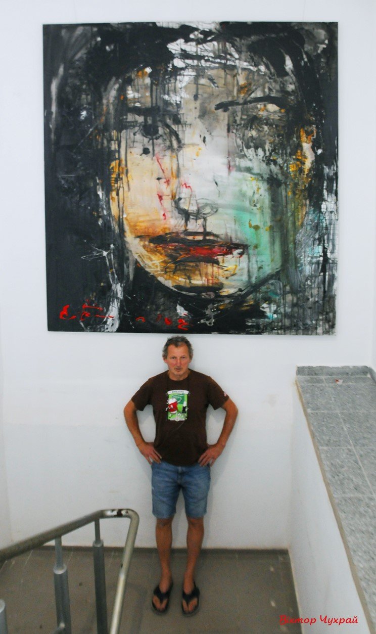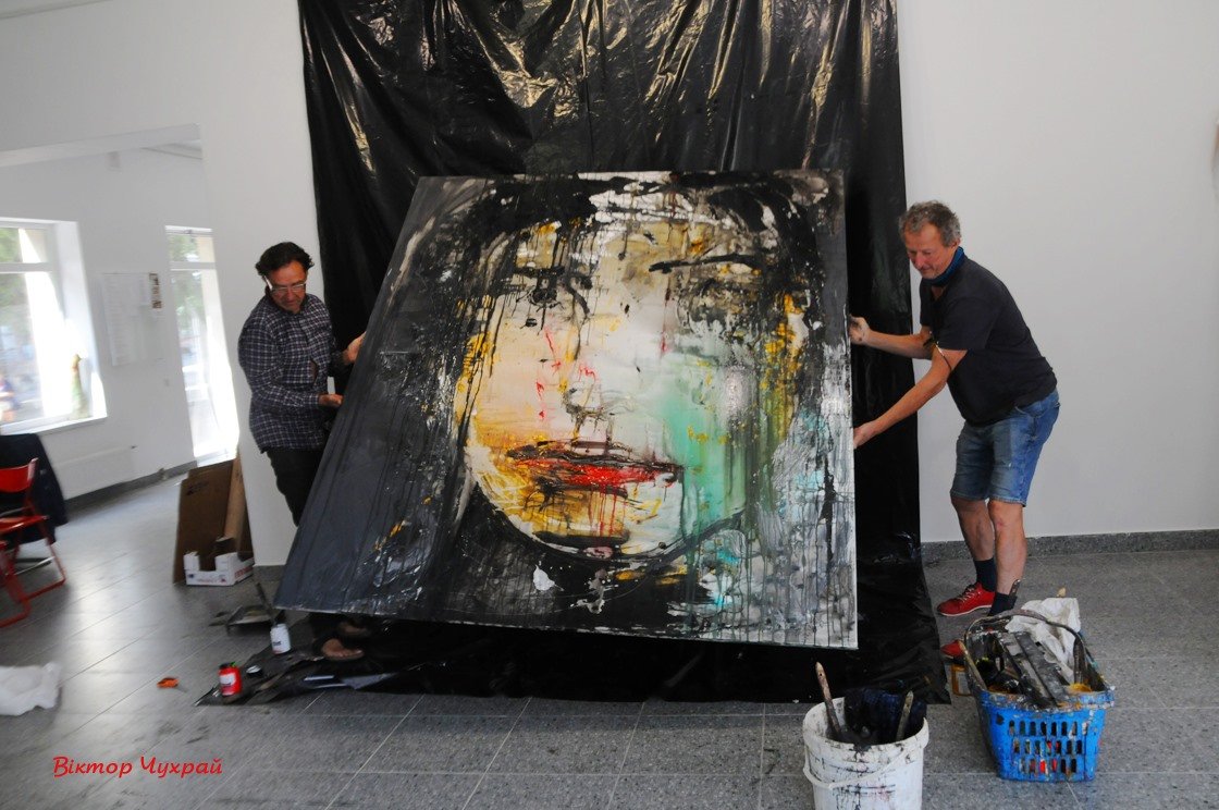 Не дивлячись на карантинні обмеження роботи культурних закладів, мистецьке життя в Галереї мистецтв ВО НСХУ не вщухає. Більш того, воно набуває нових форматів і правил спілкування – без звичного багатолюддя презентацій і фуршетного обміну враженнями. У світлих просторих залах змінюються експозиції, художники неформально спілкуються з глядачами на мінізустрічах, шанувальники прекрасного приходять на живі перегляди без звичних анонсів. І коли заходиш у галерею, то кожного разу відчуваєш інтригу – адже невідомо, що там на тебе чекає.От і того липневого дня молоді художники розвішували свої роботи для нової експозиції «Молода Волинь», а у великій залі частину стіни закрив чорний поліетилен. Чоловік у футболці і джинсових шортах натягував білосніжне полотно на велику раму.Наступного дня готове полотно вже стояло біля стіни, і його білий квадрат на чорному поліетилені виглядав як вхід до порталу, за яким – невідомість. Поряд стояв різнокольоровий пластиковий кошик з щітками, ганчір’ям, кілька баночок з акриловими фарбами – чорною, червоною, жовтою, синьою, лежав великий шпатель. Станок, палітра, пензлі – ні, такого не було.Художник поклав полотно на підлогу, спочатку полив водою, а потім прямо із баночки перехилив трохи жовтої фарби на калюжку води на полотні і почав шпателем, широкими мазками розмазувати її по поверхні... Чорна фарба, червона – їх так само нібито недбало, легко художник лив прямо з баночок, змішував шпателем, розтирав щіткою.В якісь моменти він піднімав край полотна, і тоді вода розмивала зображення патьоками. І тоді образ, який поступово там проступав, – обличчя, очі, губи – раптом ніби кудись ховався, потім знову являвся більш чіткими рисами, лукавив, бавився емоціями, манив загадками, посміхався, закопилював тонку губу, вдивлявся в тебе. Це була жінка. «Хто вона?» – спочатку подумала, а потім запитала.Поки Едуард працював (хоча назвати це працею, мабуть, неточно, бо це відбувалося легко, невимушено, але за якимсь інтуїтивним планом автора), його друзі-художники Володимир Марчук, Сергій Корсай, Володимир Жежерун спостерігали за процесом, жартували, що таку картину неможливо скопіювати чи підробити. Віктор Чухрай фіксував цікаві моменти фотокамерою.«Це аватарка жінки з фейсбука, – відповів на моє питання Еудард. –Вона придбала мою картину онлайн, а мені сподобалось її фото. Я запитав, чи можна її намалювати, і вона дозволила». Він показав фото на своєму смартфоні. Було б недоречно очікувати буквальної схожості фото з портретом, але безсумнівно це була Вона! Ніжна, мінлива, загадкова, далека і недосяжна. Як мрія.Наприкінці художник згідно з власним ритуалом взяв тюбик червоного акрилу і поставив яскравий підпис. Фарба протягом кількох днів мусила просохнути, а Едуард час від часу додавав кілька фінальних штрихів вже на майже готовому портреті.Волинянин Едуард Бєльський – один із найуспішніших в Європі українських художників. Автор численних персональних виставок в Австрії, Чехії, Франції, Німеччині, Швеції, Великій Британії, США. Його твори знаходяться в найпрестижніших галереях і приватних колекціях країн Європи і США. Художник з сім’єю мешкає в Словенії, і щороку приїздить на Волинь – до родини. У Луцьку вже відбулося декілька його персональних виставок, під час яких волинські шанувальники сучасного мис
