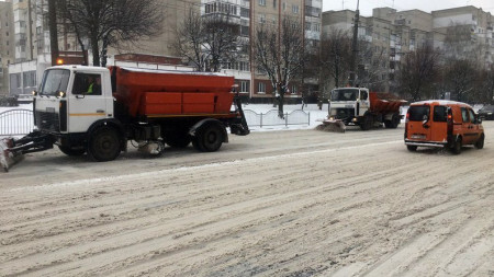 Через те, що сніг у Луцьку не припиняв падати майже добу, комунальники працюють безперервно звечора 28 листопада. Спецтехніка розчищала дороги та тротуари і вночі.