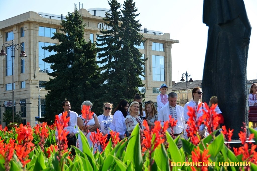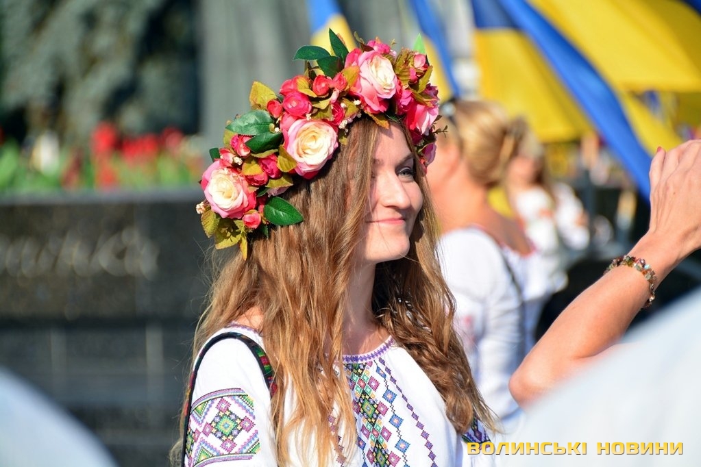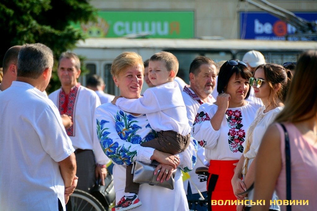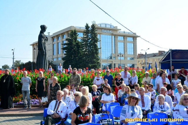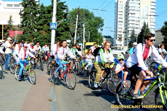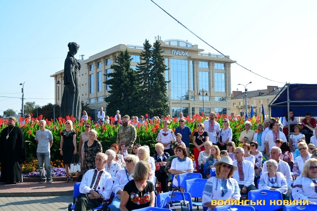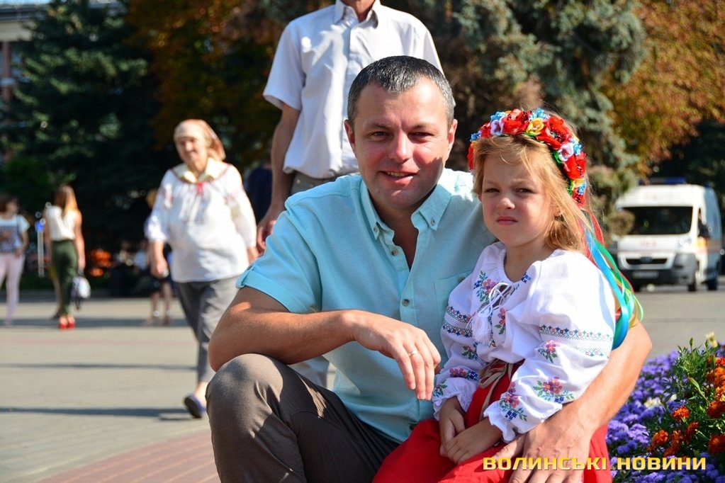 Ще о 8.00 в храмах Луцька священики відслужили молебень за Україну, а вже згодом вулицями міста пройшов велопробіг, в якому взяли участь д лучан одягнених у вишиванки. Попри святковий настрій у місті не забувають про війну з Росією на сході, тож лучани поклали квіти до пам’ятного фотостенду «Героям Небесної Сотні» та «Загиблим за єдність України», таким чином вшанувавши їхній подвиг. Також лучани могли спостерігати пряму трансляцію святкового параду у Києві та виступ Президента України Петра Порошенка.