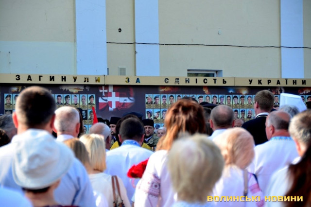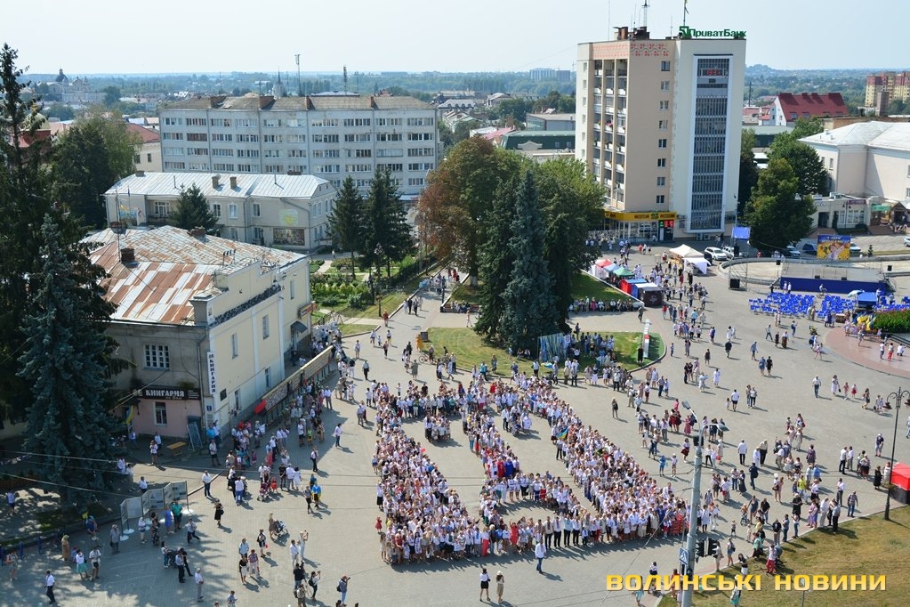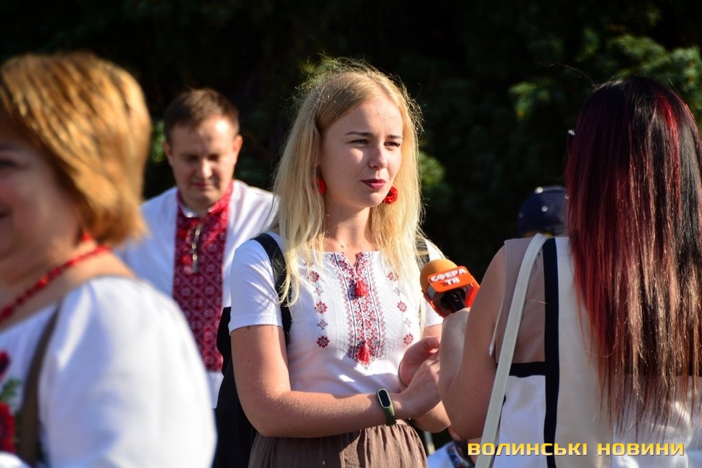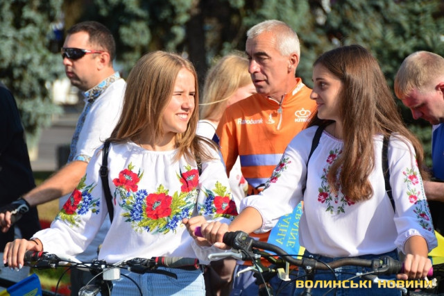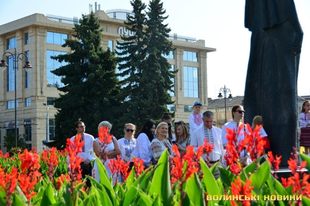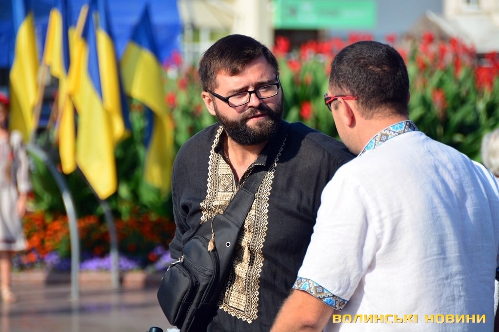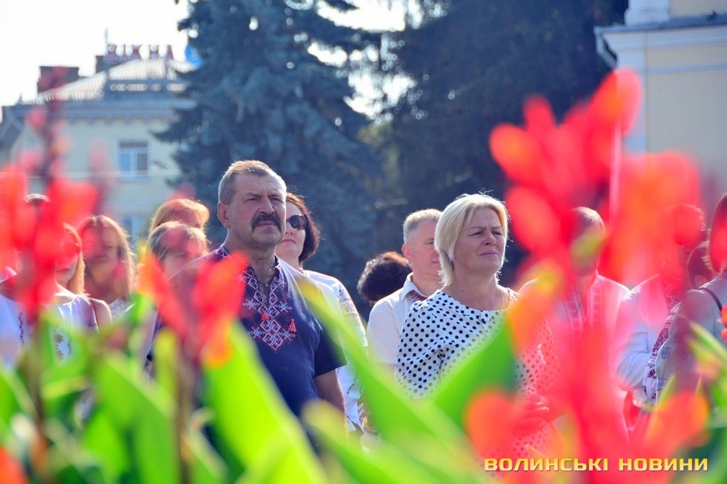 Ще о 8.00 в храмах Луцька священики відслужили молебень за Україну, а вже згодом вулицями міста пройшов велопробіг, в якому взяли участь д лучан одягнених у вишиванки. Попри святковий настрій у місті не забувають про війну з Росією на сході, тож лучани поклали квіти до пам’ятного фотостенду «Героям Небесної Сотні» та «Загиблим за єдність України», таким чином вшанувавши їхній подвиг. Також лучани могли спостерігати пряму трансляцію святкового параду у Києві та виступ Президента України Петра Порошенка.