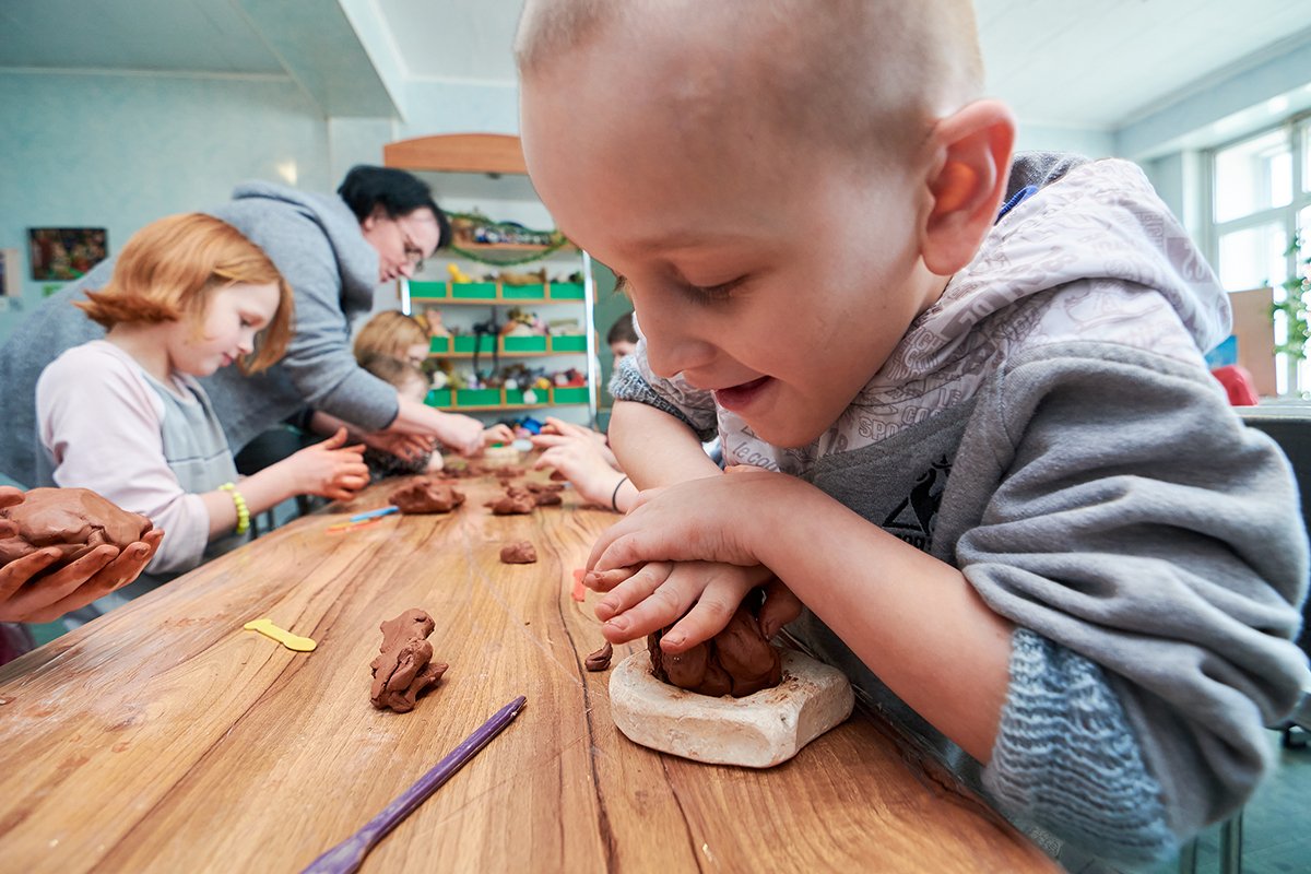 «У найменших діток завдяки заняттям із ліплення глиною гарно розвивається дрібна моторика. Глина добре розвиває уяву, вона заспокоює і розслабляє, – провадить керівник організації. – Навіть батьки кажуть, що приводять дітей на заняття і самі тут заспокоюються. Бо у нас справді позитивна атмосфера. І це попри те, що трапляються вкрай важкі діти, нервові, зі складними розладами, емоційно підірвані. Та ми бачимо, як ці заняття допомагають віднайти душевну рівновагу, й дуже з того тішимося».