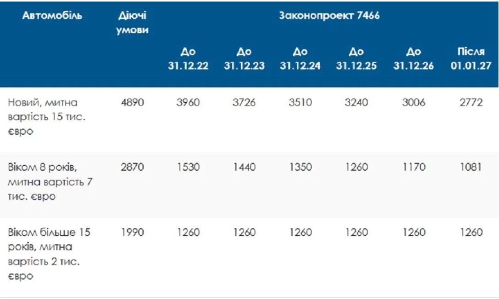 Наприклад, за 1,5 літрову нову машину доведеться заплатити 3960 євро, за 8-річну – 1530 євро, а за 15-річну – всього 1260 євро. А в 2027 році розмитнення 8-річного автомобіля коштуватиме 1081 євро.Формула розмитнення автомобіля 2022