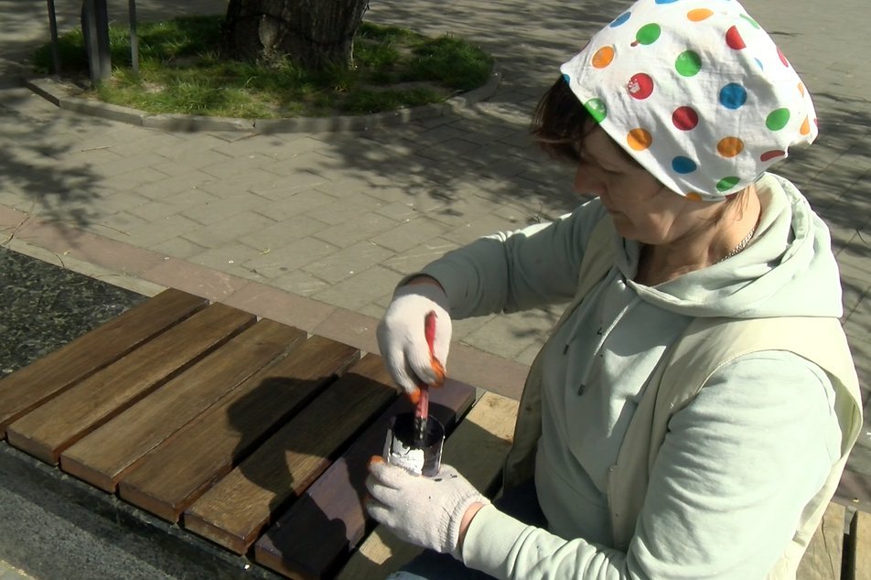 Територію навколо фонтану теж прибирають. Працівниця Любов Щибор разом із колежанками лакує лавки.«Дуже часто приїжджаємо і сміття стільки тут – жах! Листя, недопалки, палички різні, корки від пляшок. Смітник же стоїть, тяжко підійти і кинути? Могли би бути культурнішими гості та лучани наші», – каже жінка.