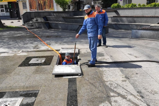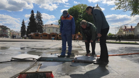 11 травня комунальники почали роботу на фонтані, що розташований на Театральному майдані міста.