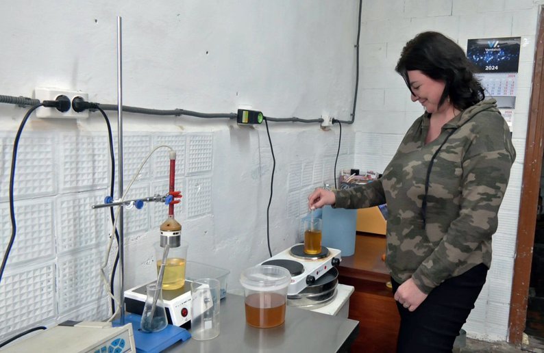 За добу на підприємстві переробляють до 60 тонн соняшника. Очищену олію відправляють на аналіз в лабораторію.