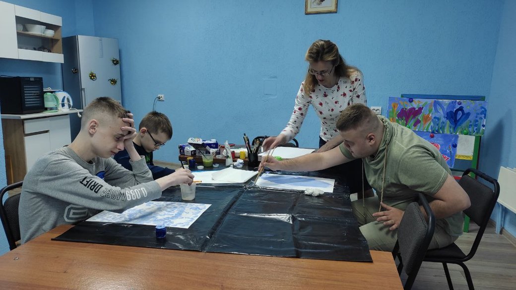 Арттерапевтичні заняття спрямовані на те, аби навчити дітей контактувати з людьми. Діти стають більш контактні після таких занять, більш відкриті, заспокоюють їх такі заняття, — каже вчителька образотворчого мистецтва Оксана Горбова.